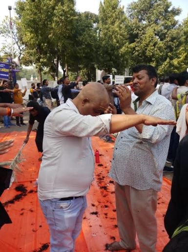 सैंकड़ों चयनीत प्राध्यापकों में से 50-50 का जत्था हर प्रमुख यात्रा केंद्र पर मुंडन कराते चल रहा है।मुंडन कराने के साथ ही ये लोग रास्ते भर भीख मांगते जा रहे हैं। महू के बाद इंदौर, देवास, सोनकच्छ में मुंडन करा चुके हैं।आगे आष्टा, सीहोर, बैरागढ़ में भी मुंडन का यह क्रम जारी रहेगा।भोपाल में आमरण स्थल पर करीब 700 चयनीत महिला सहा प्राध्यापक भी पहुंचेंगी। ये सभी सामूहिक मुंडन कराएंगी।सरकार पर आदेश का पालन कराने का दबाव बनाने के लिए निकली इस पदयात्रा को प्रांतीय प्राध्यापक संघ ,जयस, अजाक्स और आकाश सहित 17  संगठनों का समर्थन मिल चुका है ।