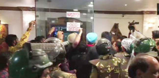 तीन पुलिसकर्मी निलंबित, पुलिस पर लोगों ने फेंकी चप्पल